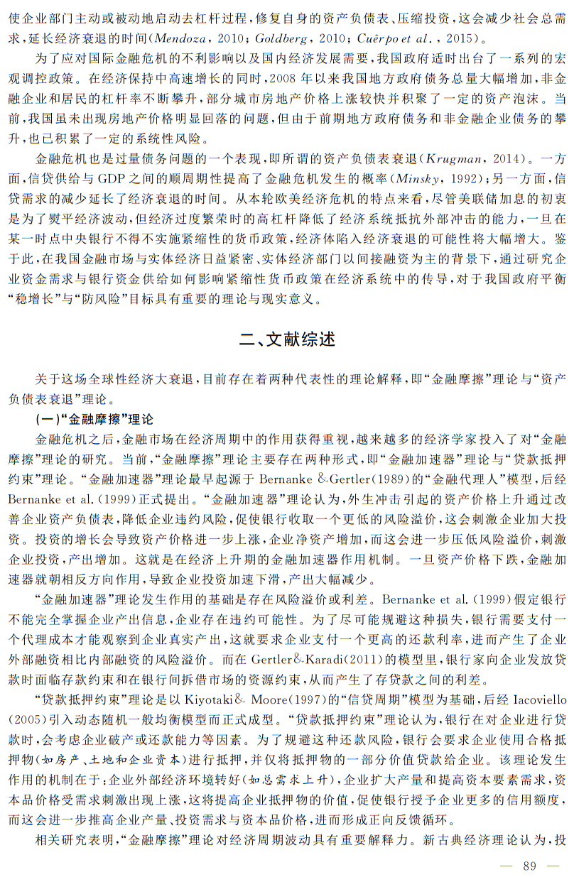 关键词:经济波动;资产负债表衰退;金融摩擦;货币政策;DSGE模型