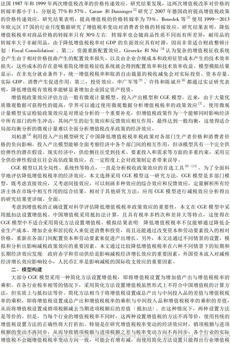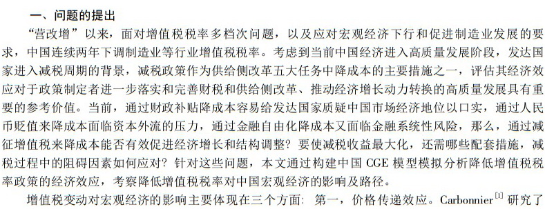 李雪松,刘明.降低增值税税率的宏观经济效应评估——基于中国CGE模型的情景模拟[J].财经问题研究,2020(02):72-80.