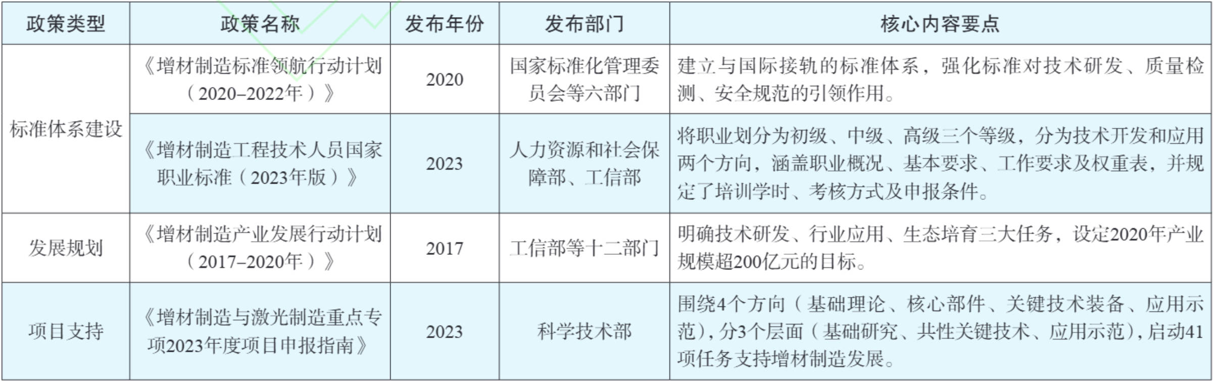表2 增材制造相关政策文件表