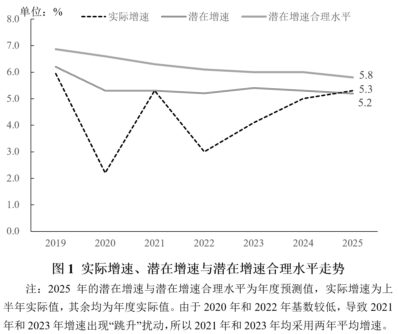 也要看到,经济回升向好基础仍需加力巩固。一是不能简单认为实际增速在短期中超过潜在增速,就表明经济已经完全恢复正常状态,还要将实际增速与潜在增速合理水平进行对比。潜在增速合理水平是最优宏观经济结构下的潜在增速水平,是一个经济体最为理想的经济增速,也是宏观政策需要锚定的核心目标。2025年中国潜在增速合理水平为5.8%左右,比实际增速高出0.5个百分点左右,可见实际增速仍有提升空间。二是就业压力仍然存在。三是价格总水平有待提升。上半年GDP平减指数同比下降1%,降幅比2024年全年扩大0.2个百分点。核心CPI有所回暖,上半年同比涨幅为0.4%,但仍低于2024年全年涨幅0.1个百分点。